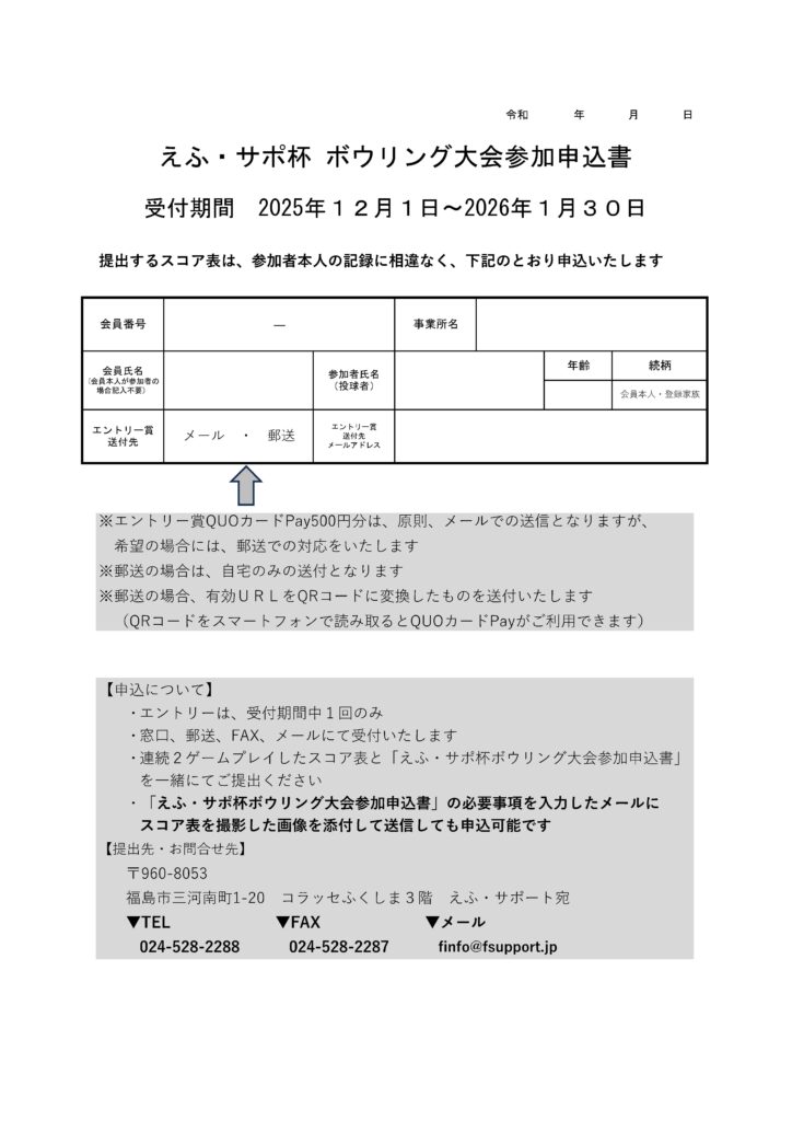 えふ・サポ杯ボウリング大会参加申込書◀◀◀こちらからダウンロードできます
