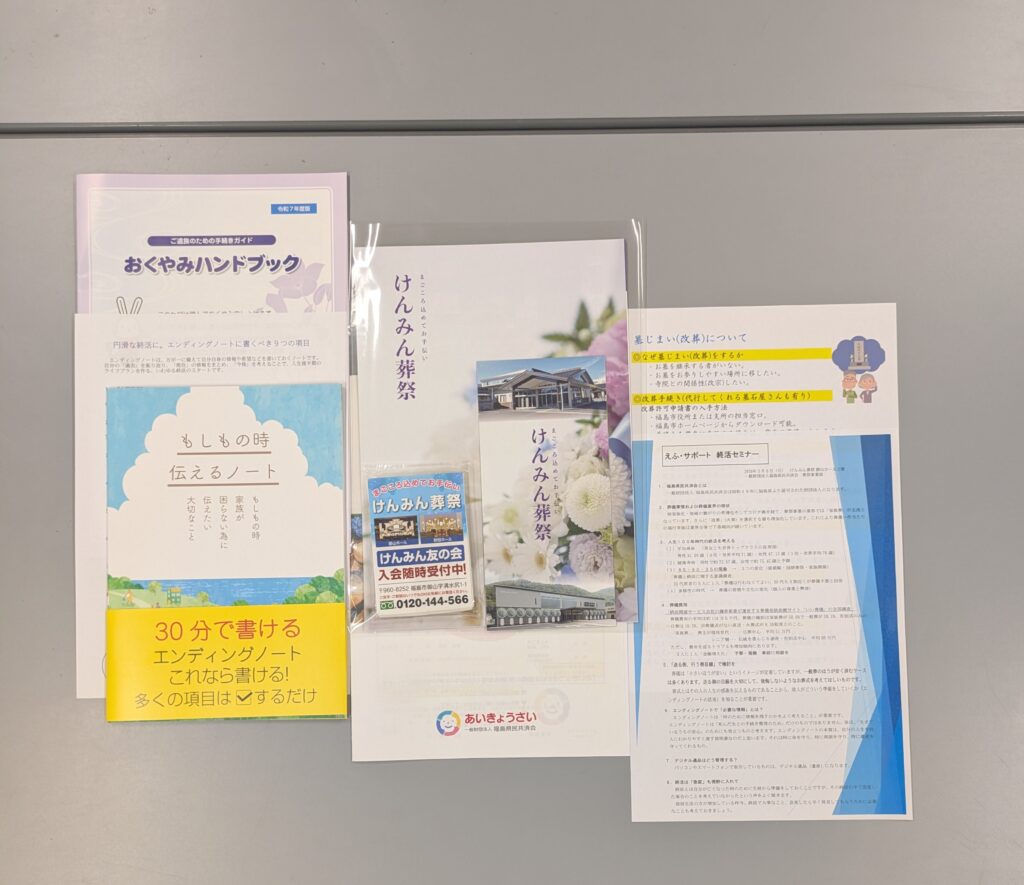 令和8年3月8日(日)に終活セミナーを(一財)福島県民共済会葬祭事業部御山ホール式場にて開催しました。(一財)福島県民共済会葬祭事業部職員を講師にお迎えし、葬儀業界の現状、エンディングノートの活用、墓じまいをはじめとしたお墓事情、お悔み後の各種手続についてご説明をいただきました。